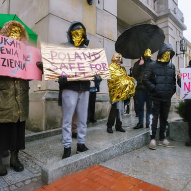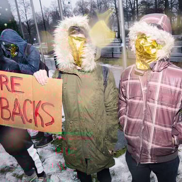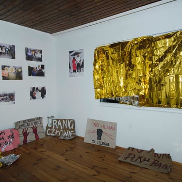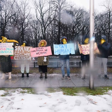 GOLDEN MASKS IS AN ARTISTIC PROJECT in collaboration with the International Humanitarian Initative Foundation and the Podlasie Volunteer Humanitarian Emergency service. Created by Xawery Deskur and myself, it started as an Art Protest in front of the Polish Prime Minister office on January 24, 2024 it evolved to series of artworks created with participation of actual people with the experience of migration that have been showcased in Köln, Berlin and Warsaw.